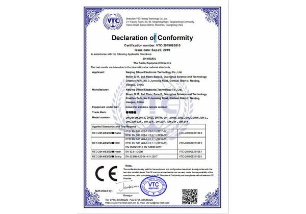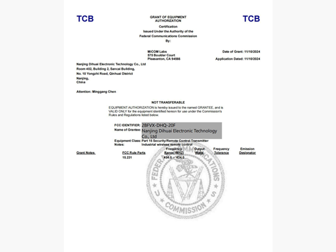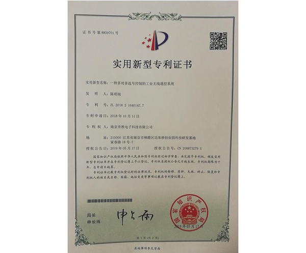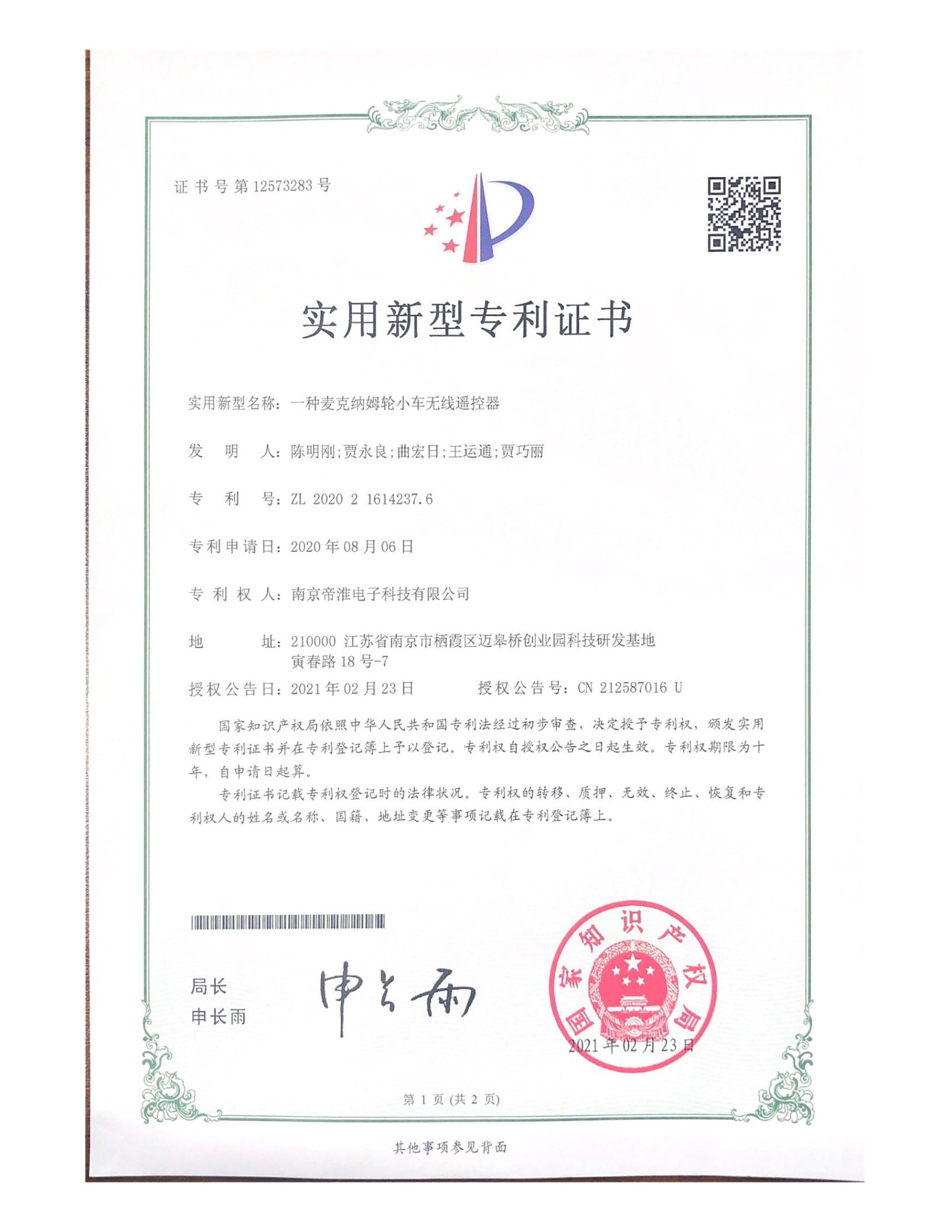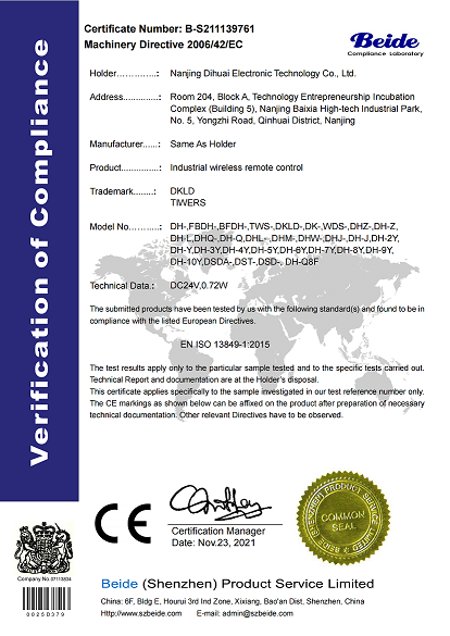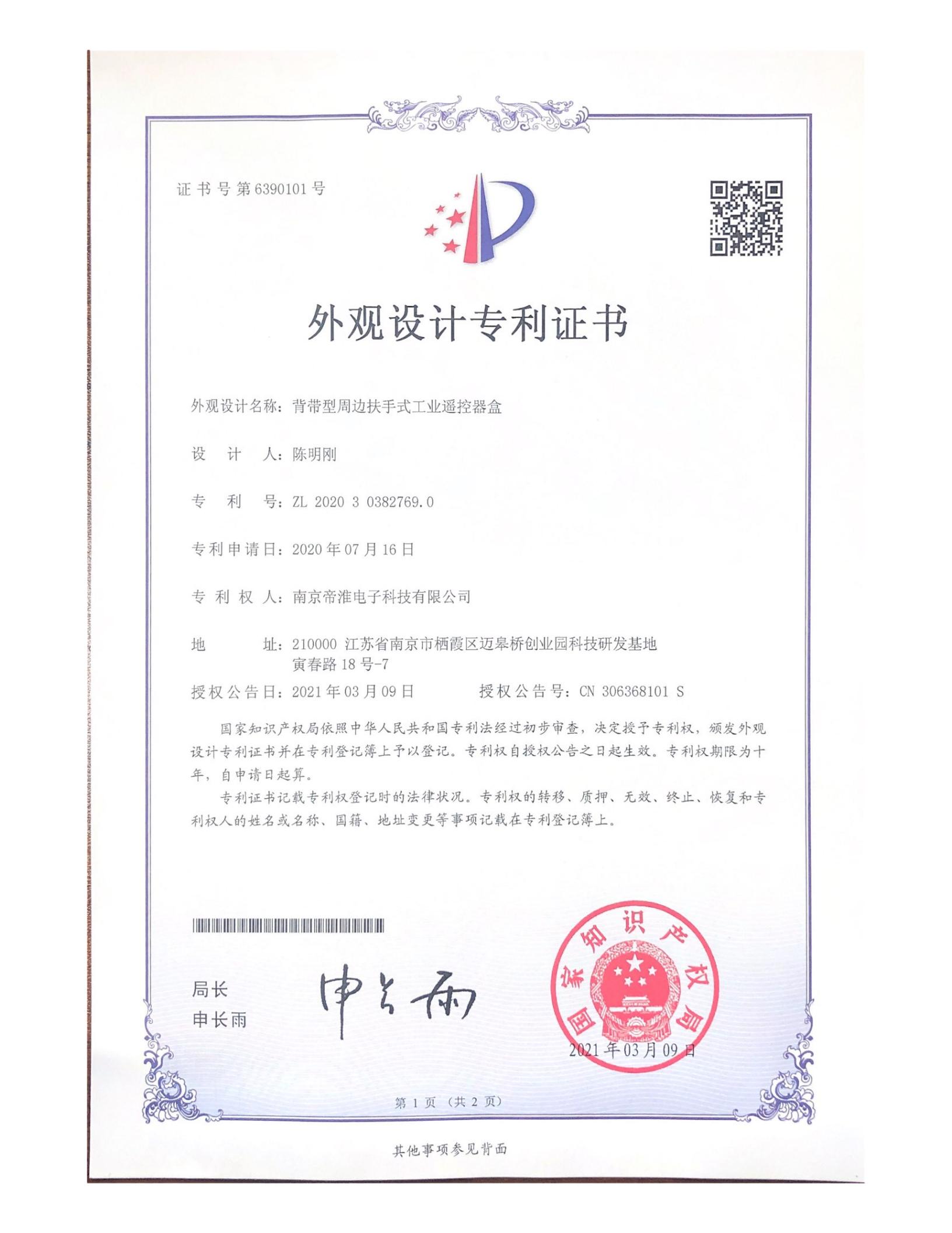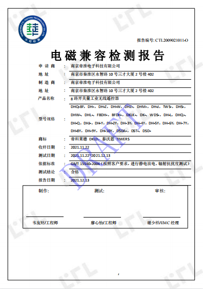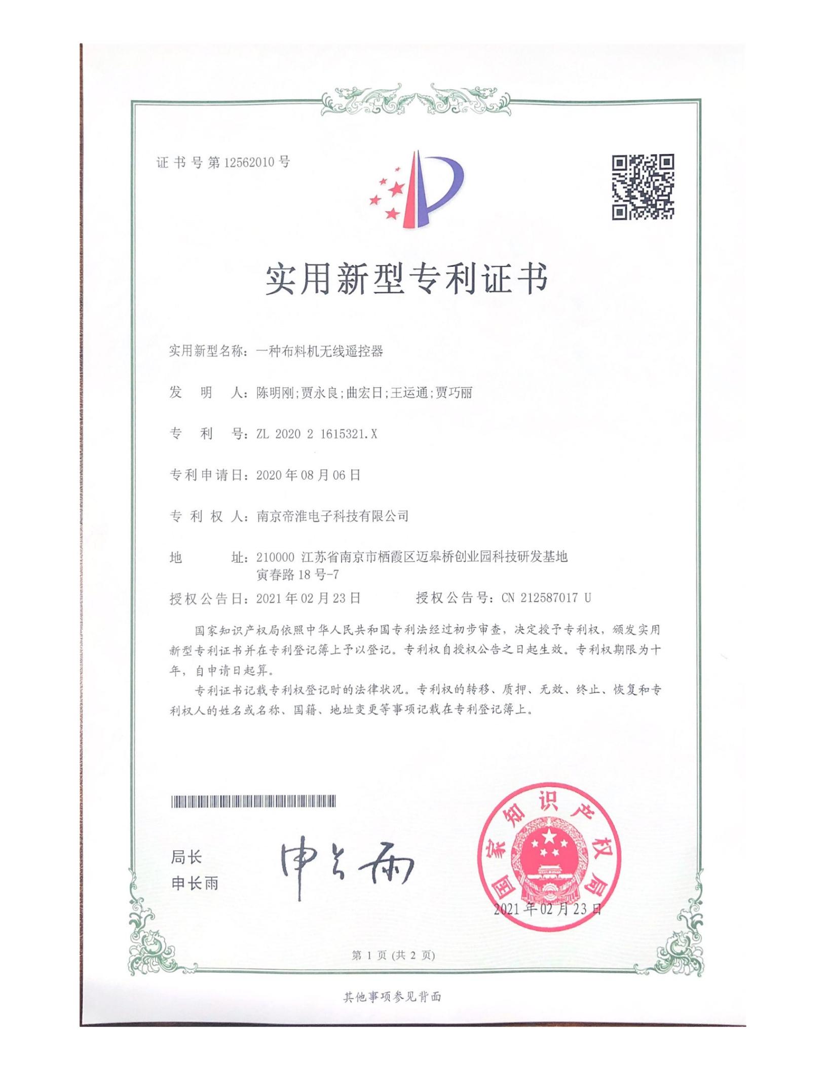 南京帝淮电子科技有限公司,国内工业??仄餍幸盗炀笠担灾餮蟹?、定制、非标设计各类工业级无线遥控器、工业级有线控制器、智能化自主算法逻辑的本地控制器等系列产品。已经申请及正在申请的技术专利、外观专利有近三十项左右,并通过了CE欧盟认证、国家级试验检验报告、EMC电磁兼容认证等。
